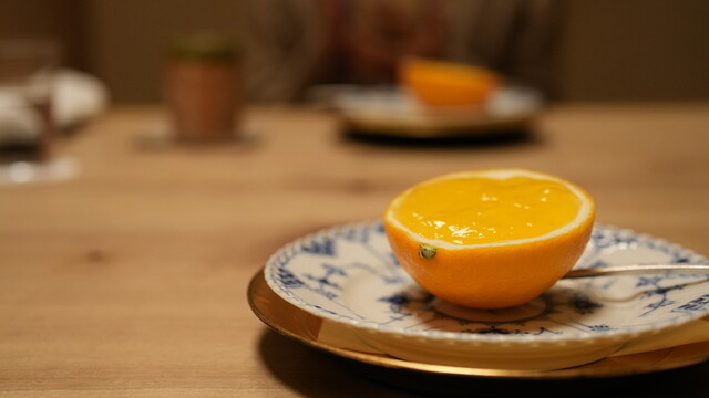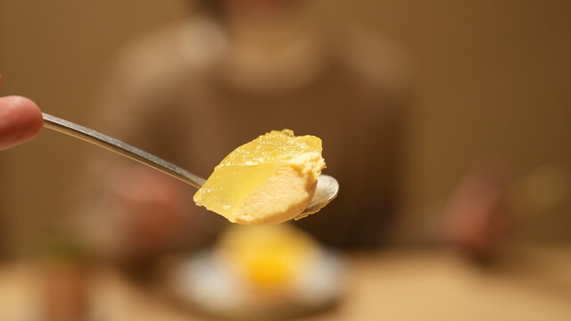 デザートはメイヤーレモンのゼリーとババロアの二層仕立て。