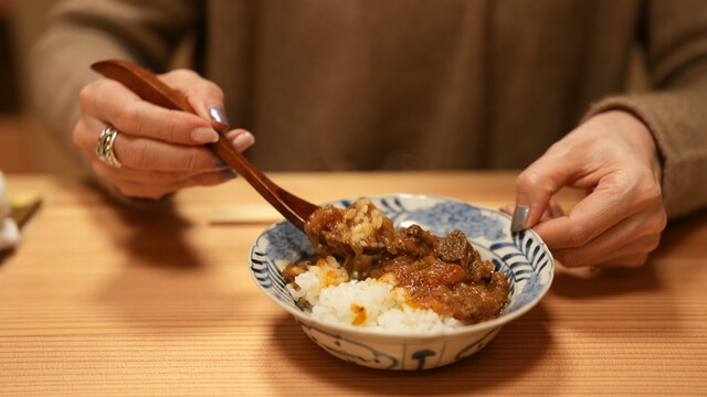 熊はツキノワグマで、脂身が結構多いにもかかわらずくどくない。