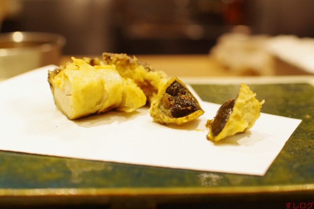 天麩羅の場合、ホロ苦さが落とされ肝の甘みを強く感じる。