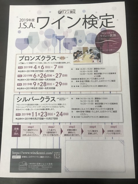 2019年度ワイン検定を八ヶ岳と名古屋でおこないます。 (2019/01/31)