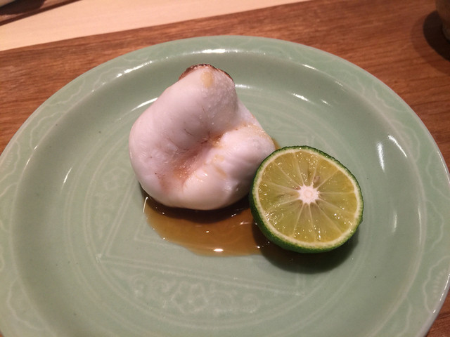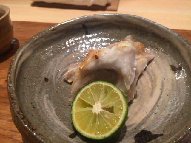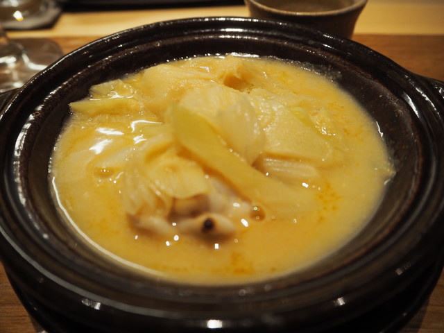 次にかわはぎの肝を和えたお料理、かわはぎだけは養殖のほうが肝が大きいそうです。コクがあって美味しいです。