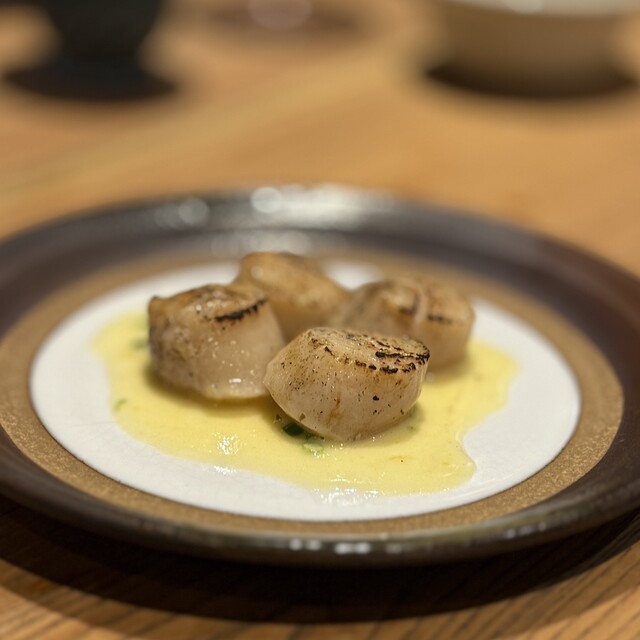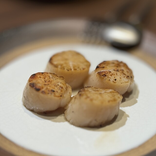 ホタテの甘味を薪火で香りがついた味の楽しさ