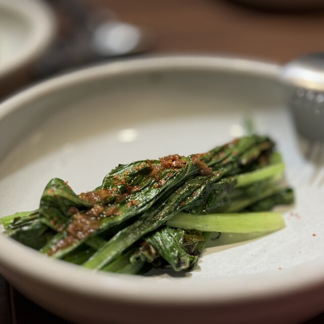 ◆鎌倉野菜 小松菜の薪火焼き 一味唐辛子を乗せて