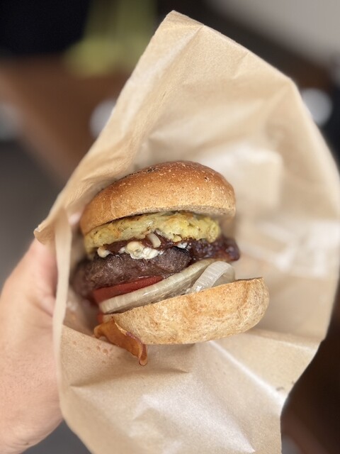 薪火による風味をゴルゴンゾーラの香りが見事にマッチしており芳醇さを感じるバーガーに仕上がっている