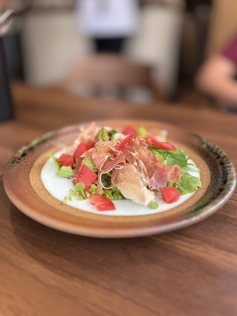 生ハムの塩みだけでも十分にサラダの味付けとしては十分