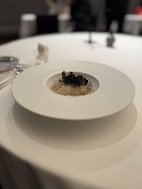 牡蠣の冷製/海水と柑橘のジュレ/黒海苔 このお店のスペシャリテ