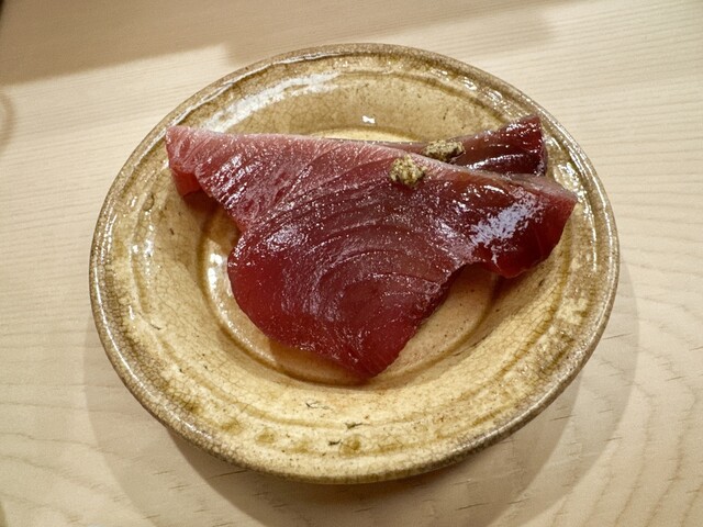 今回も十全の美味!今回のハイライトはつまみは鰹 和辛子、握りは北寄貝握り。