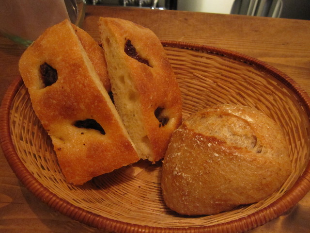 パン2種盛り:ハーブのフーガス、オニオン・カンパーニュ1