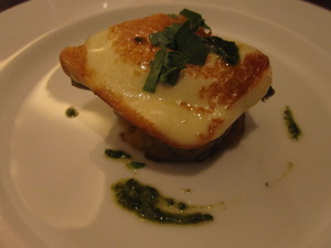 秋刀魚のコンフィとナスのパルミジャーノ、スカモルツァチーズのソテー ◎