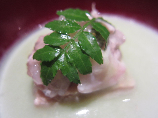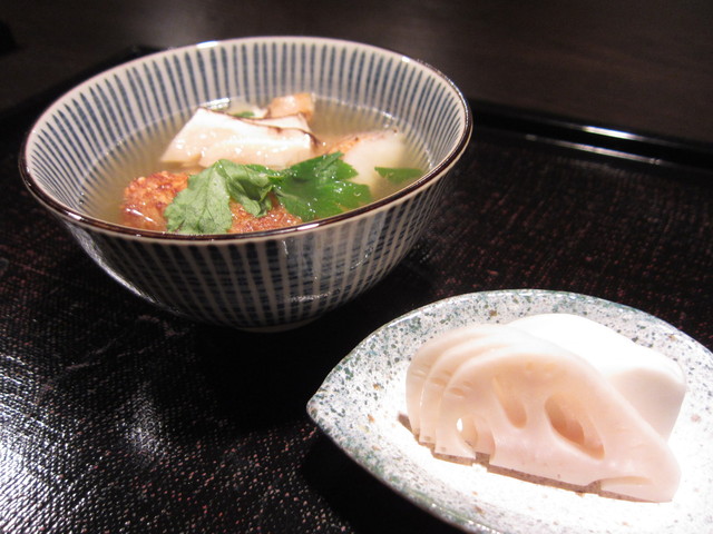 真砂豆腐(鯛の玉子豆腐)とはまぐりのジュレ 〇