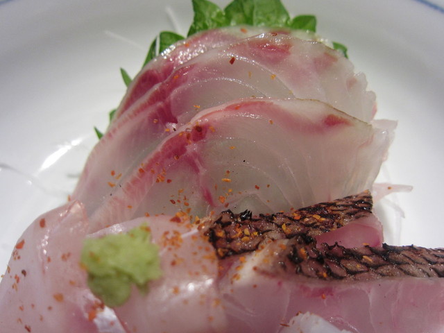 お造り2 -カンパチ、コショウダイ、石垣鯛の炙り、真鯛、アオリイカ-