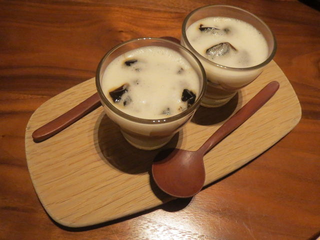 栗のプリンとラム酒風味のコーヒーゼリー、焼き栗と1
