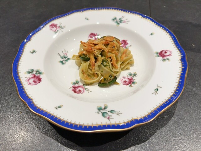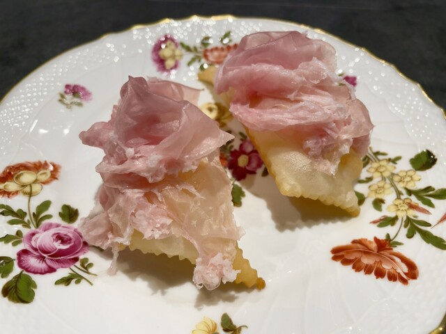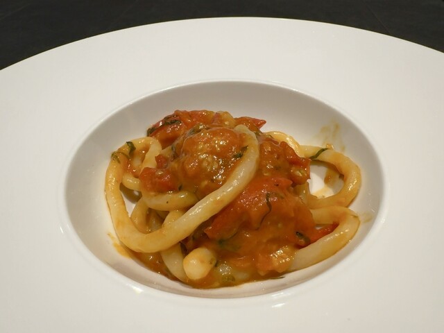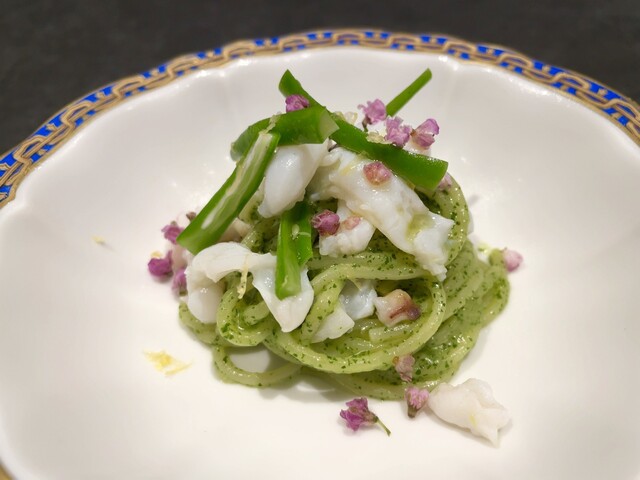 中目黒の人気店、RODEOをスターダムに押し上げた立役者のシェフの渡邊大祐さんとサービスの村中詩季ちゃんによる予約困難イタリアン。店名は渡邊シェフの地元山梨の生家が営んでいた機織りと染色の会社の屋号にちなみ、同時に生産者と作り手、客の三者を繋ぐ場で有りたいと云う思いも込める。現在、食べログアワードのシルバーかつイタリアンの百名店に当たる。