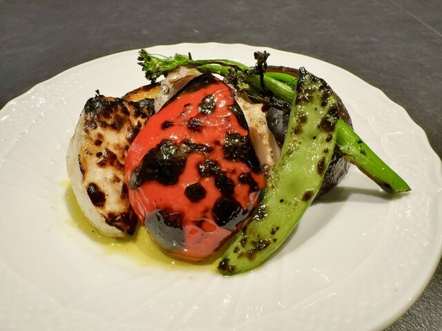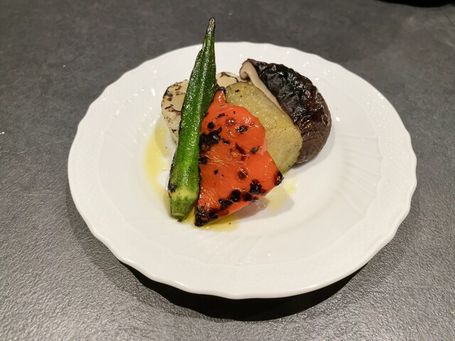 季節の焼き野菜の盛り合わせ:カブ、ズッキーニ、レンコン、シイタケ