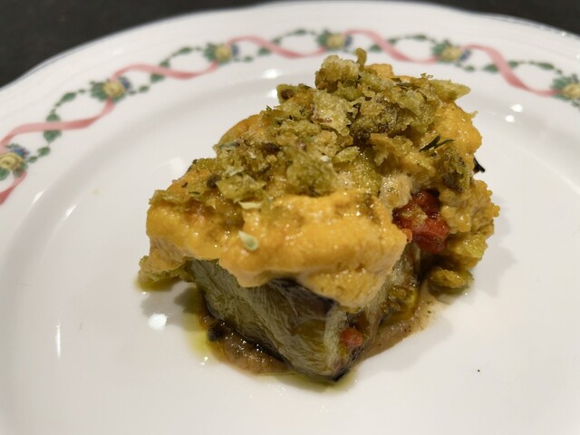 サンマのミルフィーユと茄子のマリネ バルサミコソース