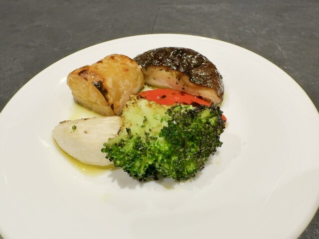 季節の焼き野菜の盛り合わせ:ブロッコリー、さつまいも、カブ、
