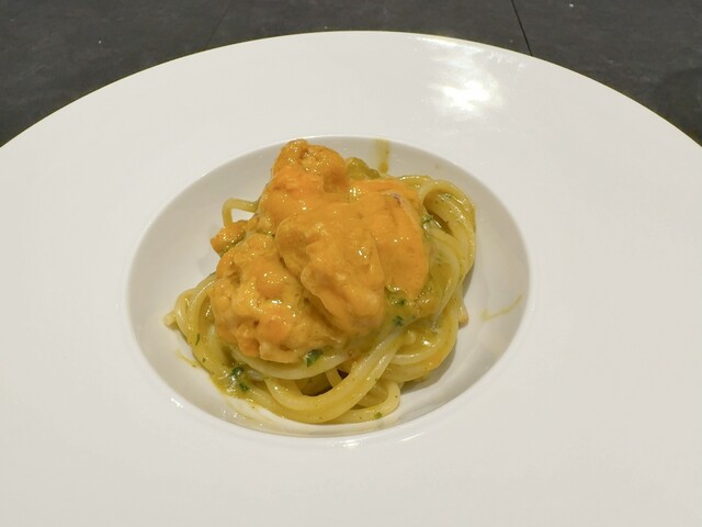 北海道バフンウニと毛蟹 冷製パスタ 山葵