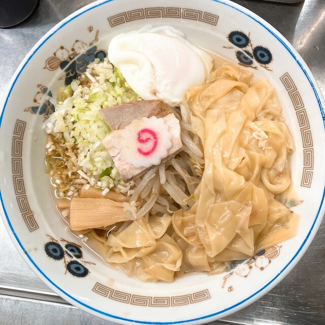 • 冷しワンタンメン(コマ葱増し、麺軽) 半熟卵付き