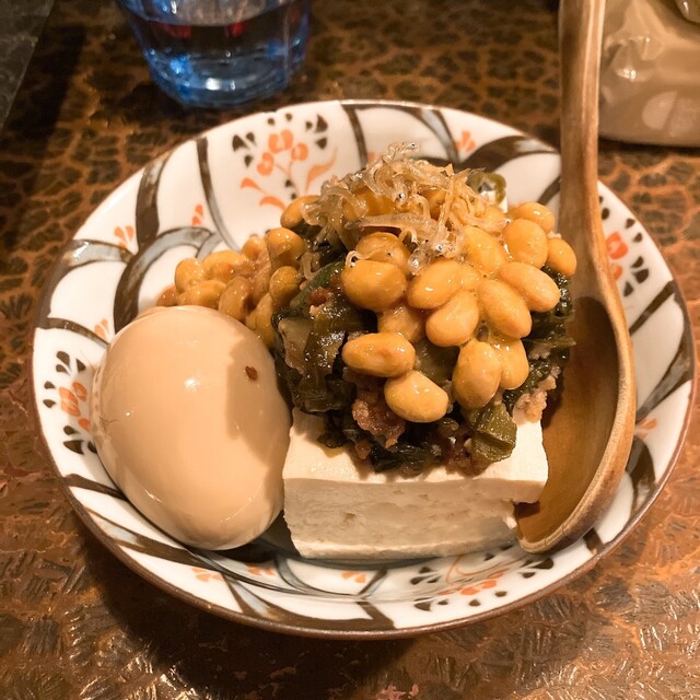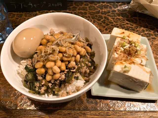 納豆丼 煮卵付き(ご飯少なめ)、冷奴