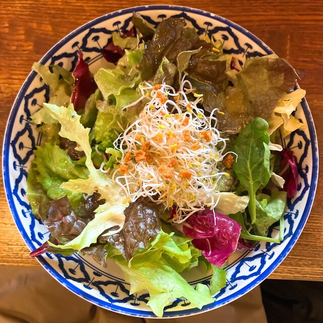 どのカレーも、ライスには必ず卓上のナンプラーを振りかけてくださいね。うまさ倍増するので。あと、さっぱりドレッシング&ピンクい塩でいただくサラダもうまいのでぜひ。