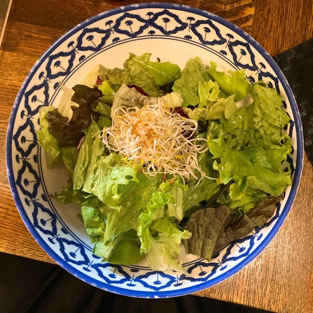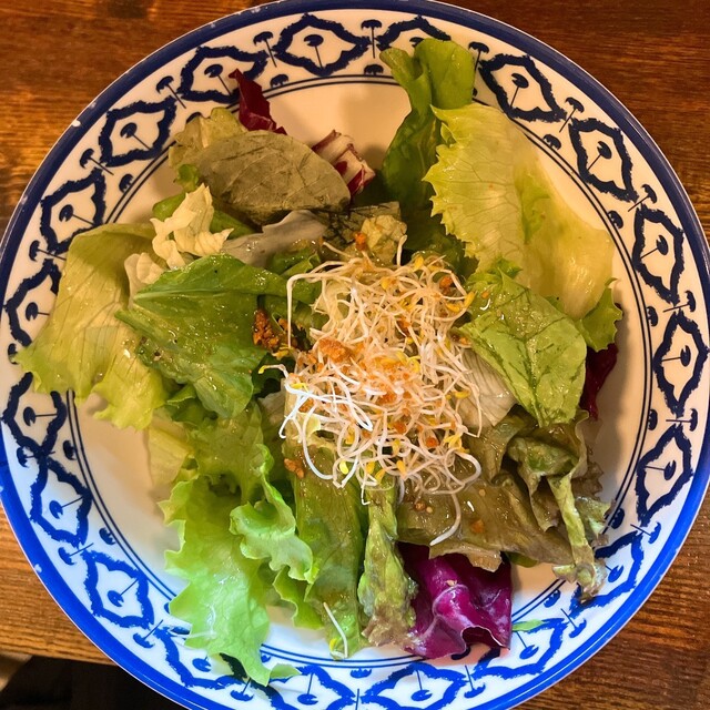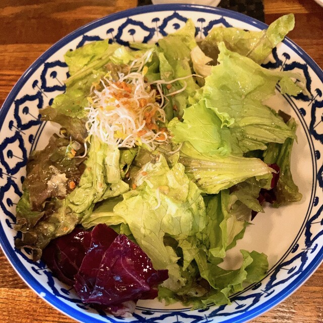 どのカレーも、ライスには必ず卓上のナンプラーを振りかけてくださいね。うまさ倍増するので。あと、さっぱりドレッシング&ピンクい塩でいただくサラダもうまいのでぜひ。