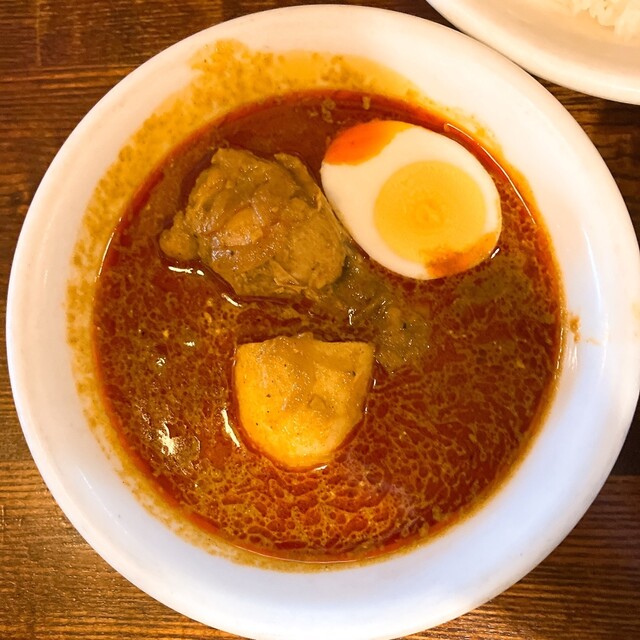 鮮やかな辛味とコクが押し寄せ、比喩としてではなくスプーンが止まらず、食べ終わるころには「もう一皿食べたい…」と早期中毒症状が始まっている、たいへんにドラッギーなカレーです。
