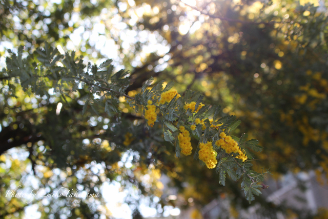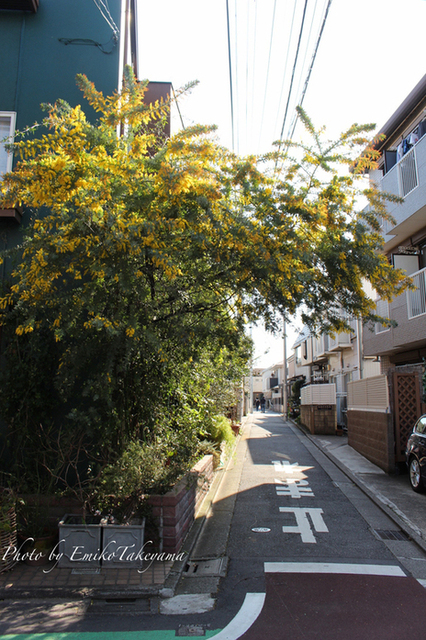 ポカポカしたお天気で幸せだなあと思いながら(私はお天気がいいだけで幸せと感じてしまう能天気)、美味しい食事をたっぷり提供してくれたあおい食堂を後にし、帰り道になんとも見事なミモザに出会いました。