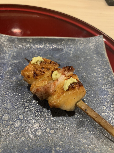 意外にもこちらでは初めてのぼんじり体験。しかも山葵で味わうという新しい感覚。ぼんじりの元来持つ脂っぽさがしっかり切れている上で、山葵がそれを上手に味のアクセントを加えながら抑えてくれているのを感じる旨味。