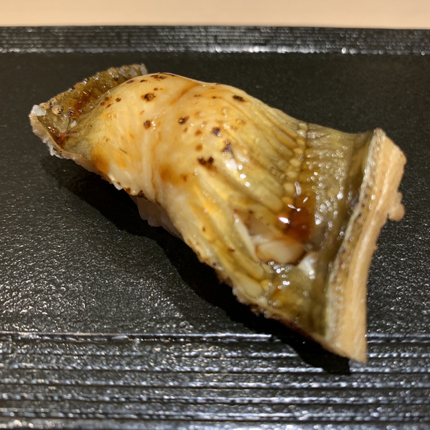 肝をトッピングしたカワハギや生鯖、飾り包丁、経験豊富な方なのだと~納得な握りでしたから