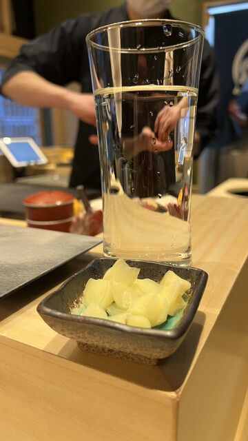 高級立食い寿司…最近新橋界隈でも流行っていて、人気店がありますが、もうなかなか予約がとれなかったりするので、オープン直後はチャンス!!とばかりに、寿司好きな友人に声をかけて予約しました。ランチの時間とディナーの時間、どちらもメニューは同じで基本予約制とのことでした。立ちですが「席」人数が限られていて計8席、4人1組で交互に回転するような予約制だそうです。ただ予約がない「立席」が空いていて、時間帯に通りすがりに来られた人おひとりおふたりくらいなら、入店可能だそうです。