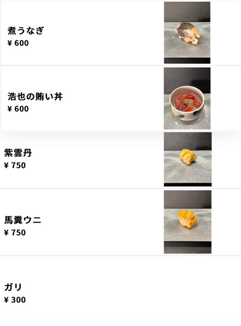 基本は食べログのコースに記載の「厳選7貫セット(お味噌汁付き) 」が1つあり、もちろんアラカルトも可能だそうですが、お寿司屋ゆえに仕入れで毎日アラカルトメニューが変わるそうです。カウンター席にはひとりひとり用QRコードがありました。グループで行っても割り勘ではなく、ひとりひとり好きに注文して明朗会計になるのはとてもイイですね。