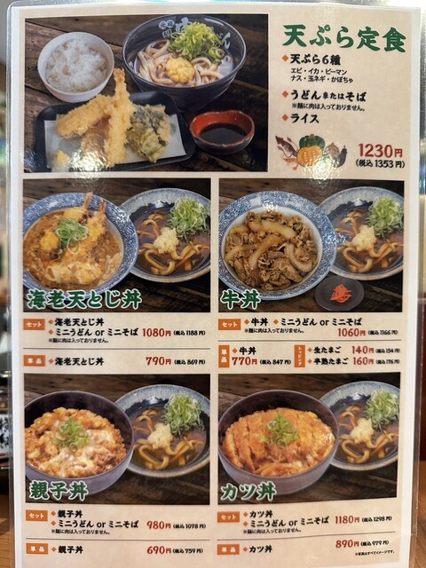 うどん、そば、だけでなく、定食系に関しても充実のラインナップなのが嬉しいですね。