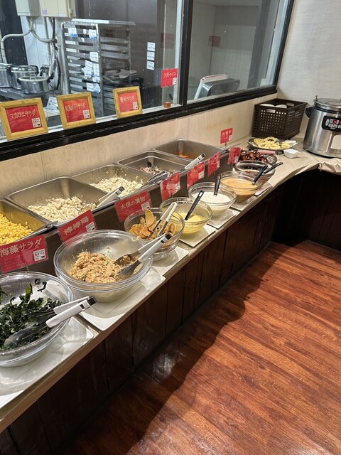 パン・ご飯、スープにサラダ、食後のデザートまで、何でも好きな物を好きなだけ食べられます。