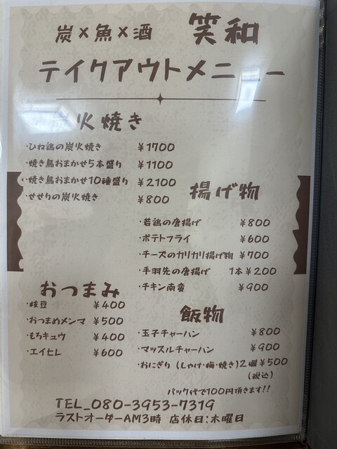 合志市須屋、県道37号熊本菊鹿線沿いにある「炭×魚×酒 笑和」さんに、月曜日の晩御飯でお邪魔しました!