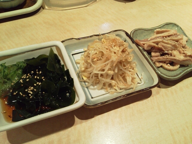クイックメニューのガツ、もやし、わかめの酢の物。