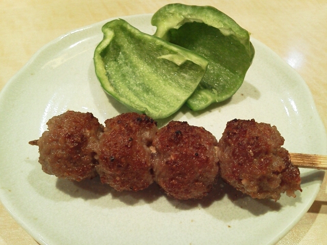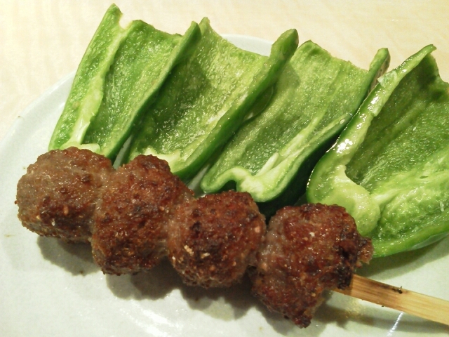 このピーマンがおいしいのか、つくねがうまいのか、