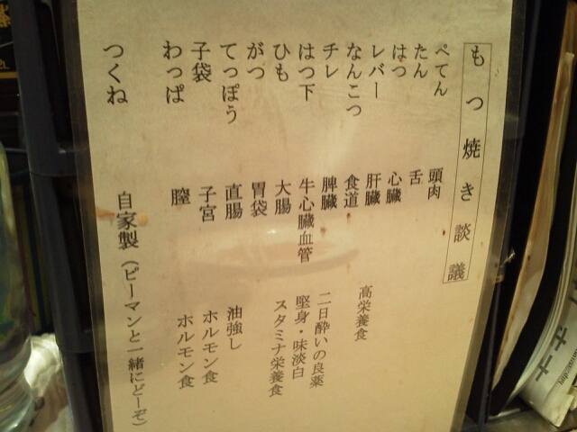 もつ焼きメニュー