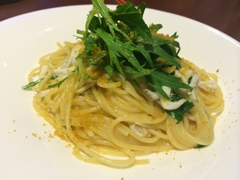 辛うじてまだ座る席が空いていたので、スタンディングは逃れる。しかもオープンしたばかりというのに、オペレーション良好。テーブルに置かれてたメニュー表は地味だったな。もっと派手にしたらいいのに。