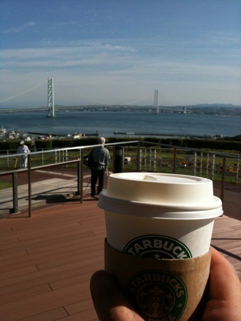 明石海峡大橋を渡ったらまずはここで休憩の絶景スタバ。