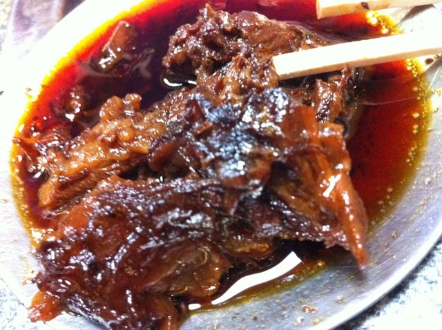 牛スジとコンニャクを甘辛く煮たコイツ、別名ぼっかけ。(注:ここのはこんにゃくが入ってないので正確にはすじのみ)