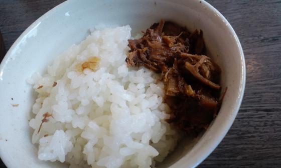 調理場から距離があるので 大きなしゃもじで料理が提供されます。