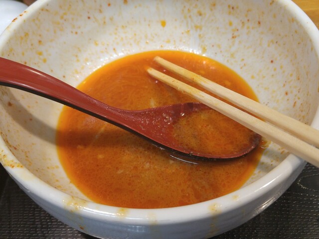 オレンジ色になる丼 スープに麺と具材が絡んで最高です!