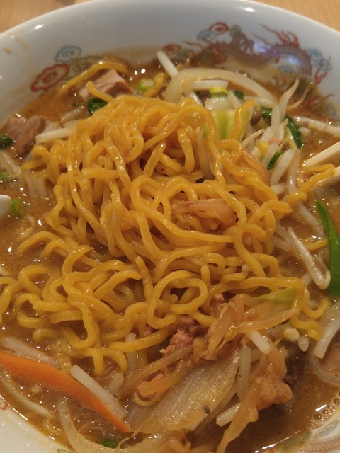 黄色いもちもちの縮れ麺もいつも通り旨い!最高です!