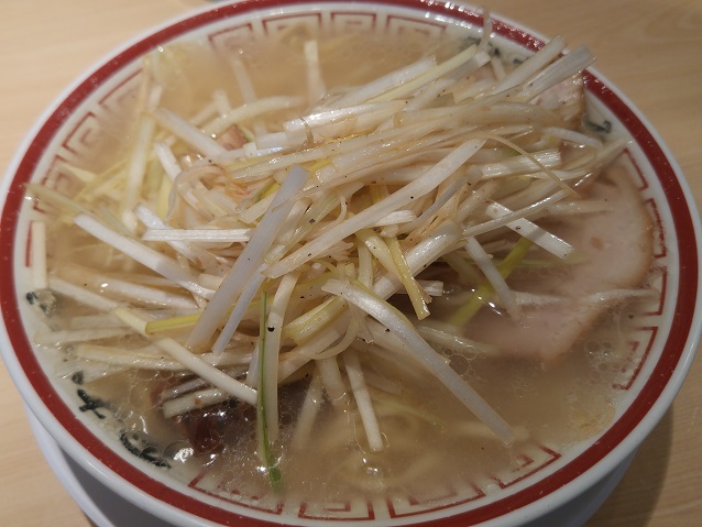 ざく切りの白髪ねぎが上に乗っている。