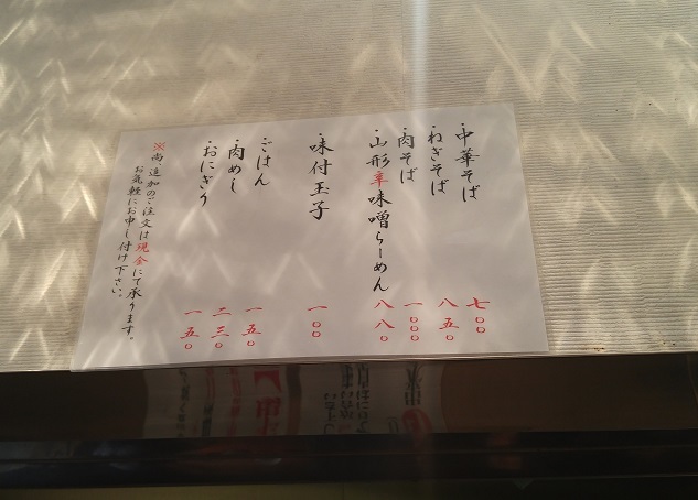 中華そば、ねぎそば、にくそば、山形辛味噌らーめん