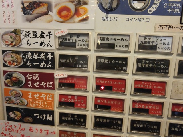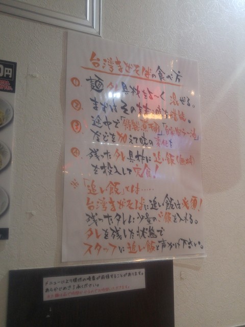 お店の壁には煮干しラーメンと台湾まぜそばと大きく書かれている。