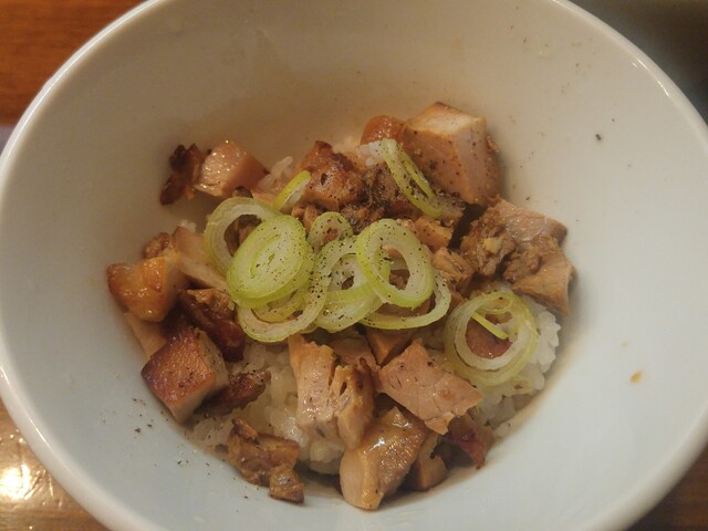 小盛のご飯の上に角切りチャーシューがたっぷり