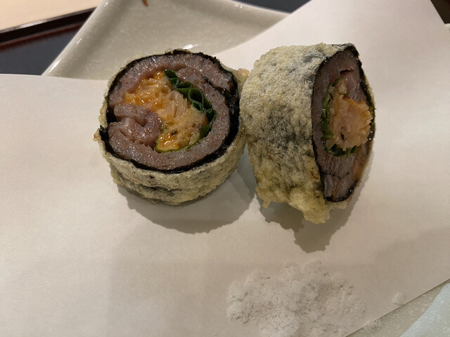 ★神戸牛サーロインの雲丹巻天麩羅
