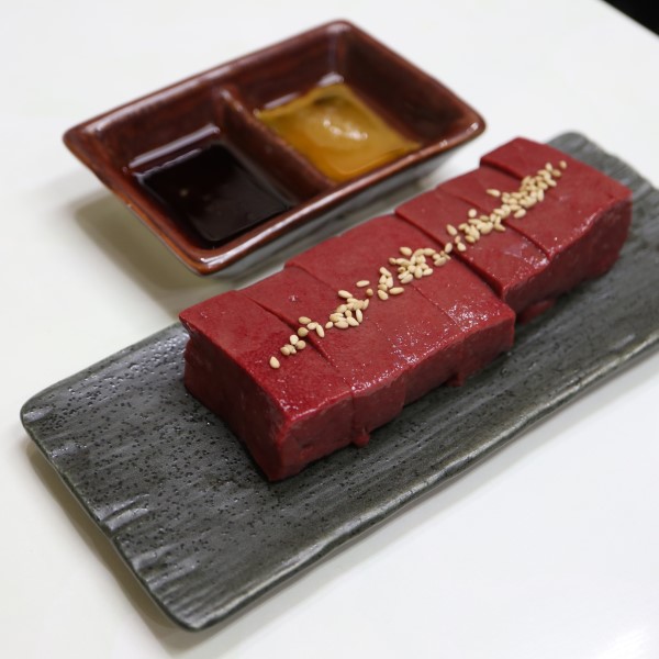 レバーは生食禁止なので必ず焼かないといけませんが、このカドがピンッと立ったエッジの鋭さは鮮度が良い証拠で、この見た目はまるで、、羊羹みたい(笑)