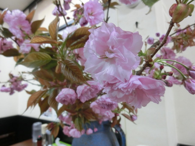 今日4月20日土曜日の紅蘭の店内は綺麗な花がパッと目立つように生けてあったので、箸を置いてサッと近づいてコンパクトデジタルカメラのシャッターを押したのは、丼の美味しい牛骨ラーメンを私にも写せます♫とパチリと撮った私だけだったように思います。でも、どの客もスマホを活用して真剣に牛骨ラーメンを撮っていました。『牛骨ラーメンは撮るんです!』こんなCMが浮かびました。
